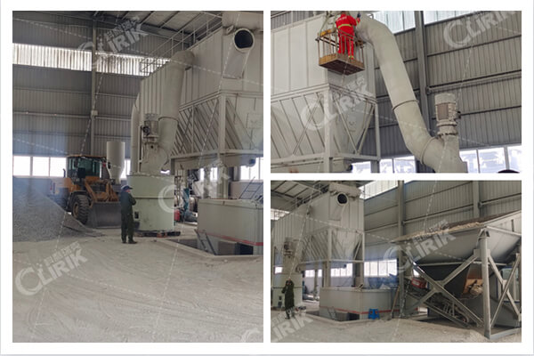 大塊物料經(jīng)破碎機破碎到所需粒度(30mm)后,由提升機將物料送至儲料斗,再由皮帶機將物料均勻定量連續(xù)地送入主機磨室磨粉機內(nèi)進行研磨。粉磨后的物料被風機氣流送入選粉機進行分級。在選粉機葉輪的作用下,不符合細度要求的物料落入磨室內(nèi)重新碾磨;合格的物料則經(jīng)空氣斜槽進入旋風集粉器內(nèi),進行分離收集,經(jīng)排料裝置排出即為成品粉體。整個過程屬于閉路循環(huán)系統(tǒng),并在正負壓狀態(tài)下運行,配備以脈沖除塵器,保證了生產(chǎn)現(xiàn)場的干凈、整潔。