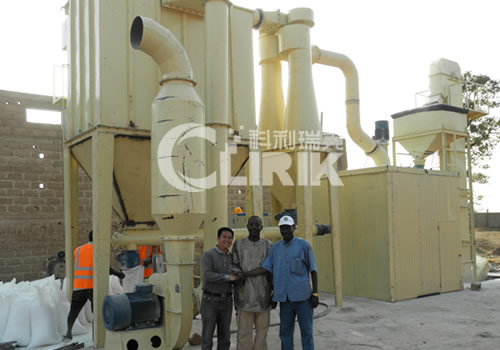 選粉機(jī)內(nèi)旋轉(zhuǎn)的葉輪使粗物料回落重磨,符合要求的細(xì)粉則隨氣流進(jìn)入旋風(fēng)集粉器并由其下部的卸料閥排出即為成品,而帶有少量細(xì)粉塵的氣流則經(jīng)過脈沖除塵器凈化后通過風(fēng)機(jī)和消聲器排出。